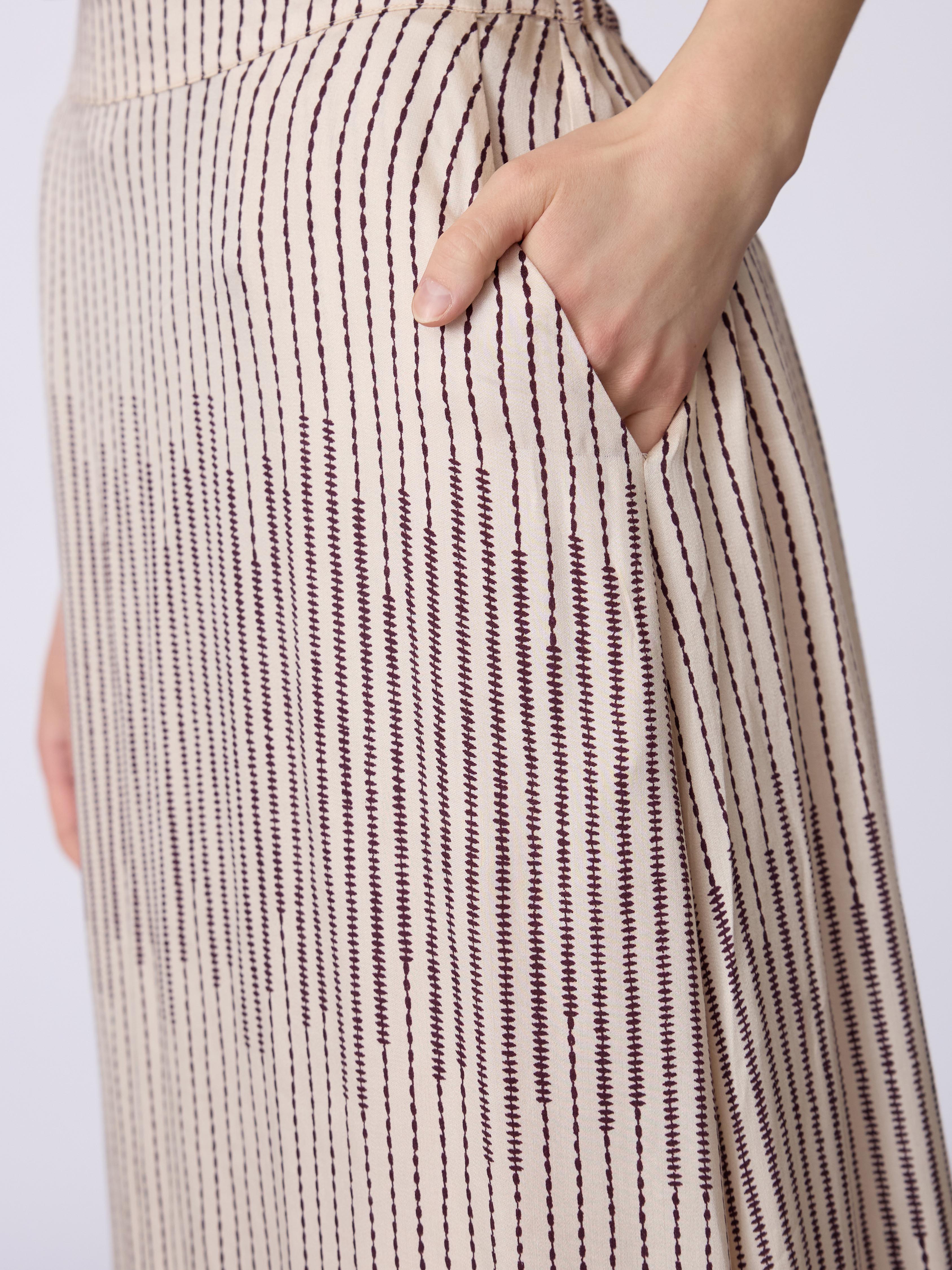 Eleganter, langer Rock aus 100 % Viskose mit grafischem Streifenmuster und fließendem Saum. Dank seiner schlichten Linienführung und des hohen Tragekomforts lässt er sich sowohl im Alltag als auch zu festlicheren Anlässen vielseitig kombinieren.
