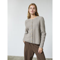 Denne cardigan kombinerer et tidløst design med fine detaljer. Den strikkede struktur giver et levende udtryk, mens de gyldne knapper foran tilfører et diskret maritimt præg. Med sin klassiske pasform og bløde kvalitet er den en alsidig style, der fungerer både over en skjorte til arbejde og som et let lag til hverdagen.
