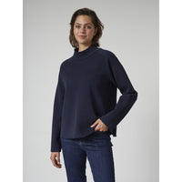 Denne bluse er skabt i et enkelt design, hvor rene linjer og en høj hals giver et tidløst udtryk. Med lange raglanærmer og en behagelig, løs pasform er den både komfortabel og let at kombinere med garderobens øvrige favoritter. En stilren basisdel, der fungerer til både hverdag og mere afslappede anledninger.