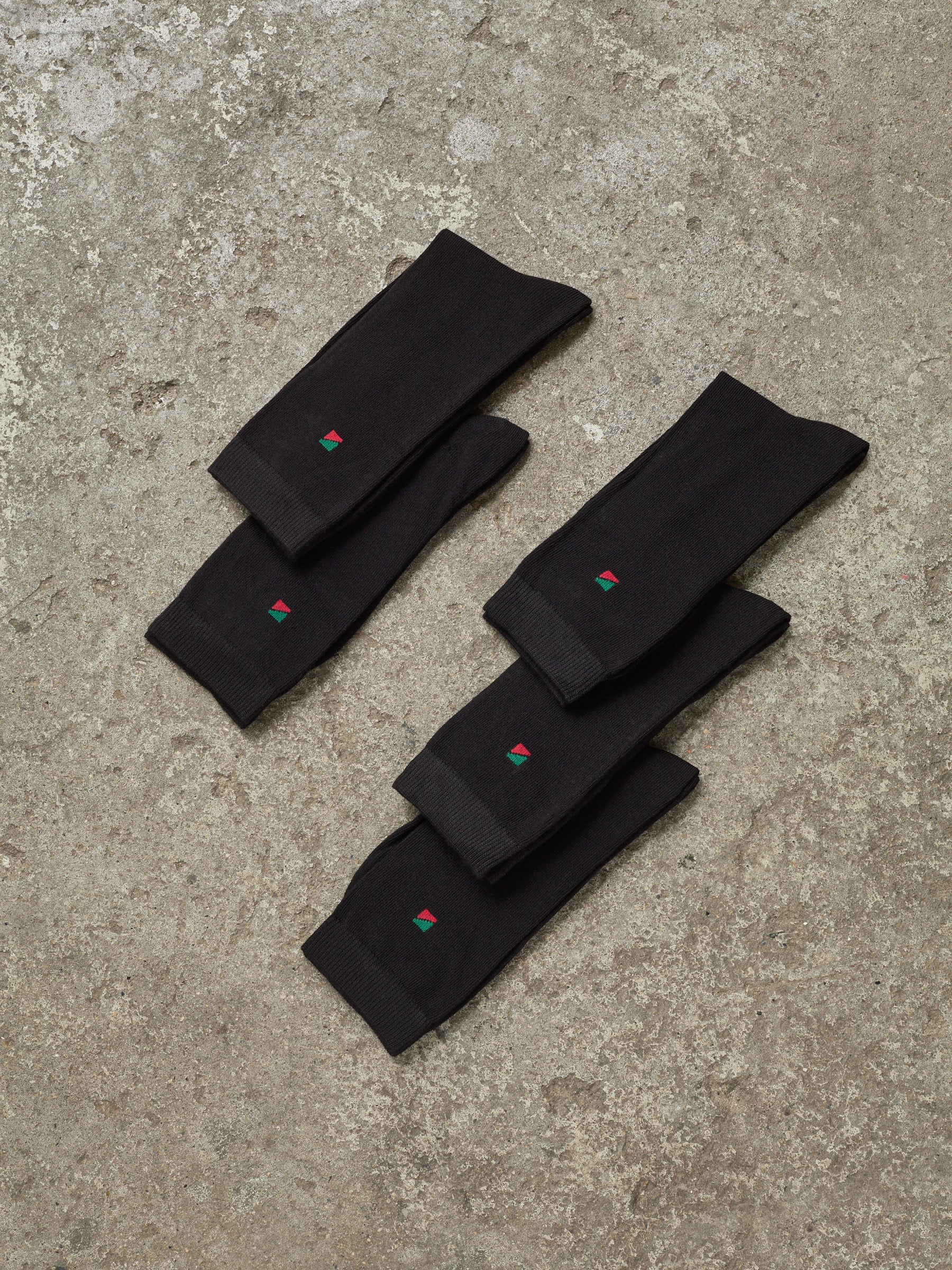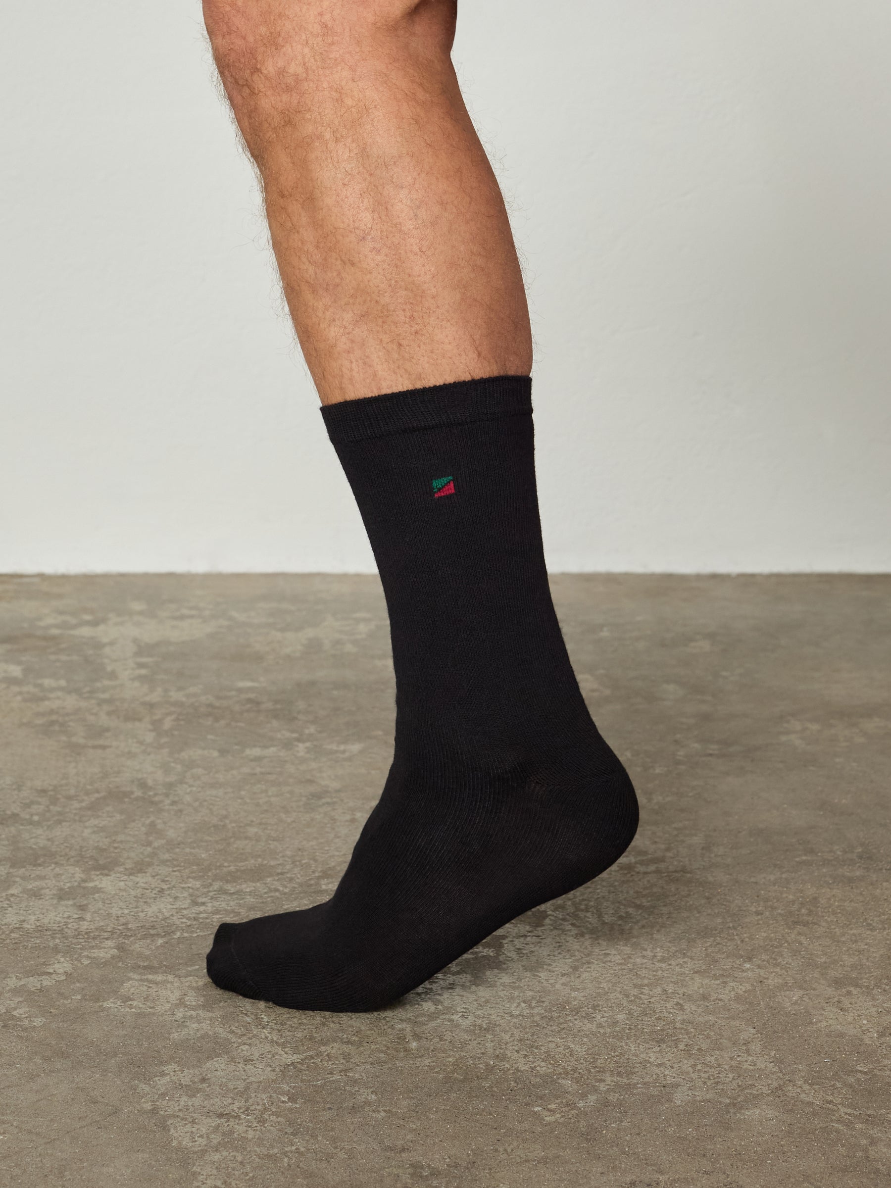 Komfortable sorte herrestrømper i blød bomuldsblanding. Klassisk design med diskret maritim detalje ved anklen. Ideelle til både hverdags- og kontorbrug.