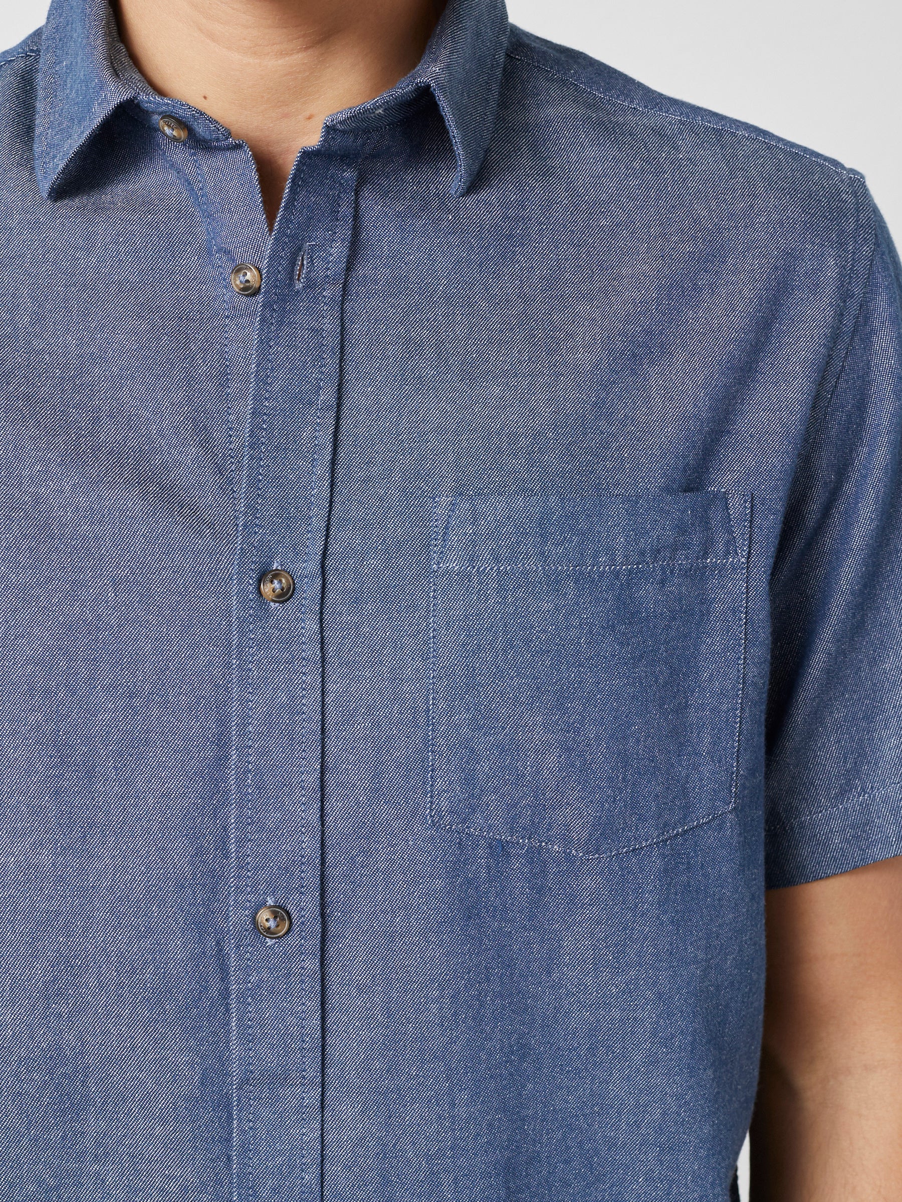 Let og afslappet herreskjorte i 100% bomuld med et rent, sommerligt udtryk. Den bløde kvalitet og korte ærmer gør skjorten behagelig på varme dage og nem at bruge til hverdagsbrug.