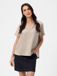 Let skjorte i hør og tencel med korte ærmer og V-udskæring. Alexia har læg på ryggen og små stikningsdetaljer foran. Et enkelt og alsidigt design – perfekt til både hverdag og sommerens lette lag.