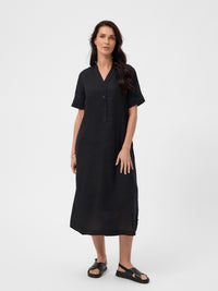 Løft din garderobe med Dannie Kjole, en tidløs kombination af stil og komfort. Fremstillet af en eksklusiv blanding af hør og viskose, tilbyder den både holdbarhed og en behagelig pasform, perfekt til alt fra familieudflugter til afslappede møder.