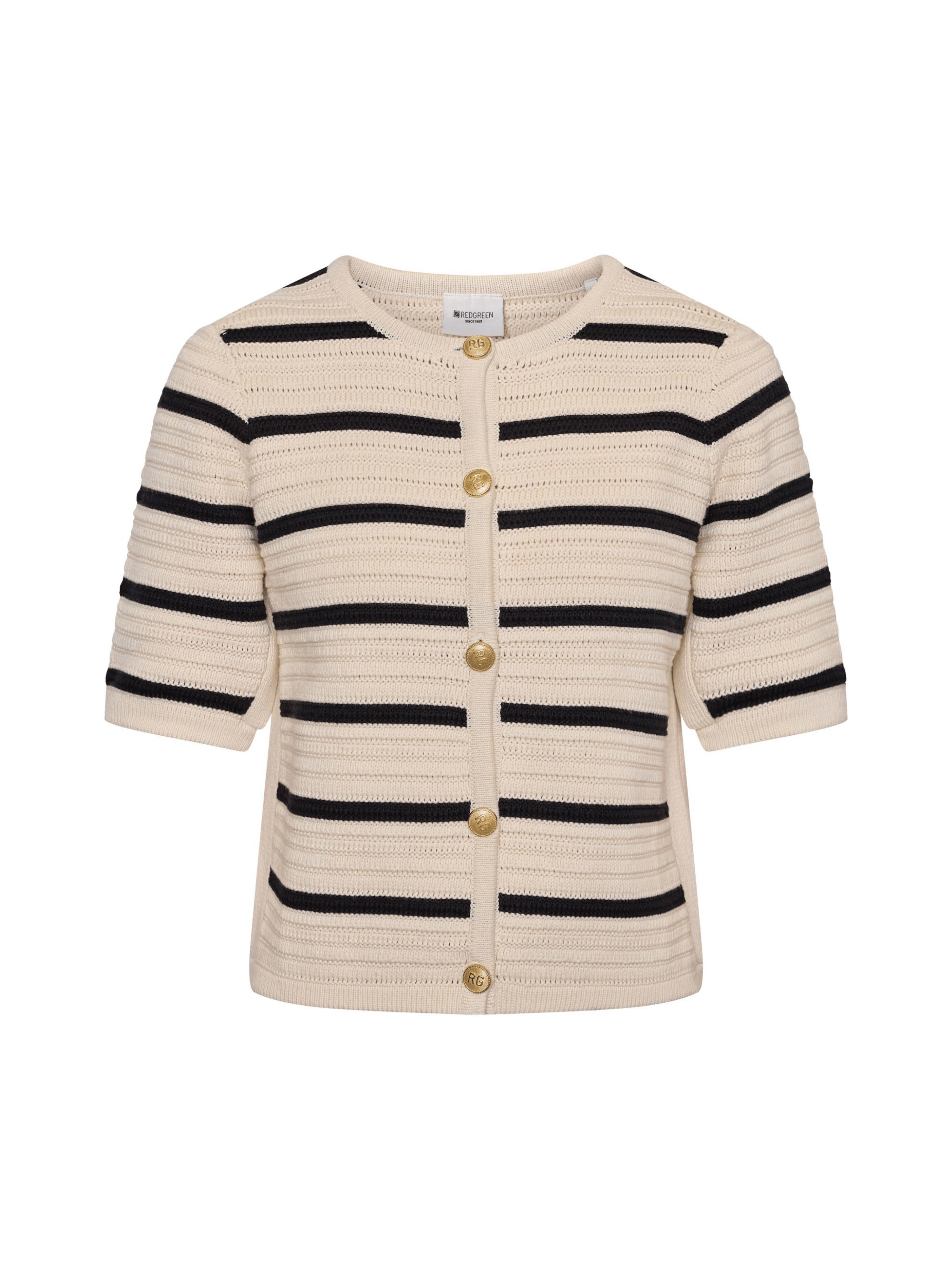 Strikket top i 100% økologisk bomuld med et klassisk stribet udtryk. Et let og tidløst design, der kombinerer nordisk enkelhed med behagelig komfort til hverdagen.