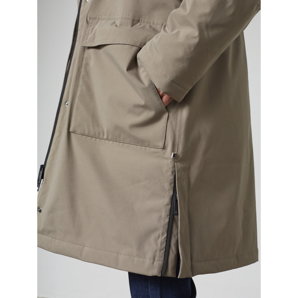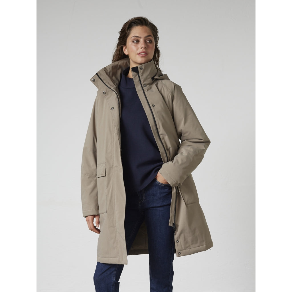 En varm og funktionel jakke med høj krave og aftagelig hætte. Den lige pasform og de rene linjer giver et enkelt udtryk, mens de diskrete detaljer holder looket tidløst. En praktisk løsning til kolde dage.